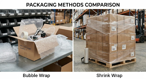 Although both packaging methods are designed to secure products during transport, they have several important differences.