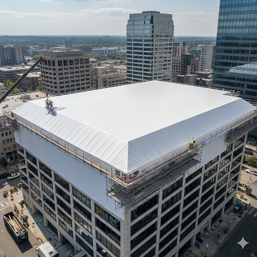 Developers use shrink wrap for construction roofs to keep projects on schedule during unpredictable weather.