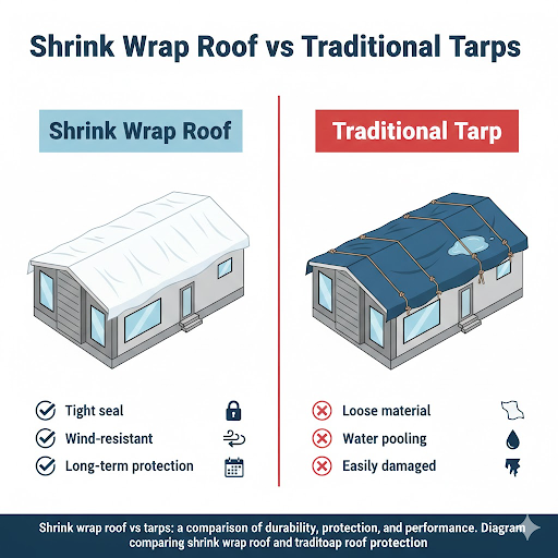 | Feature | Traditional Tarps | Shrink Wrap Roof |